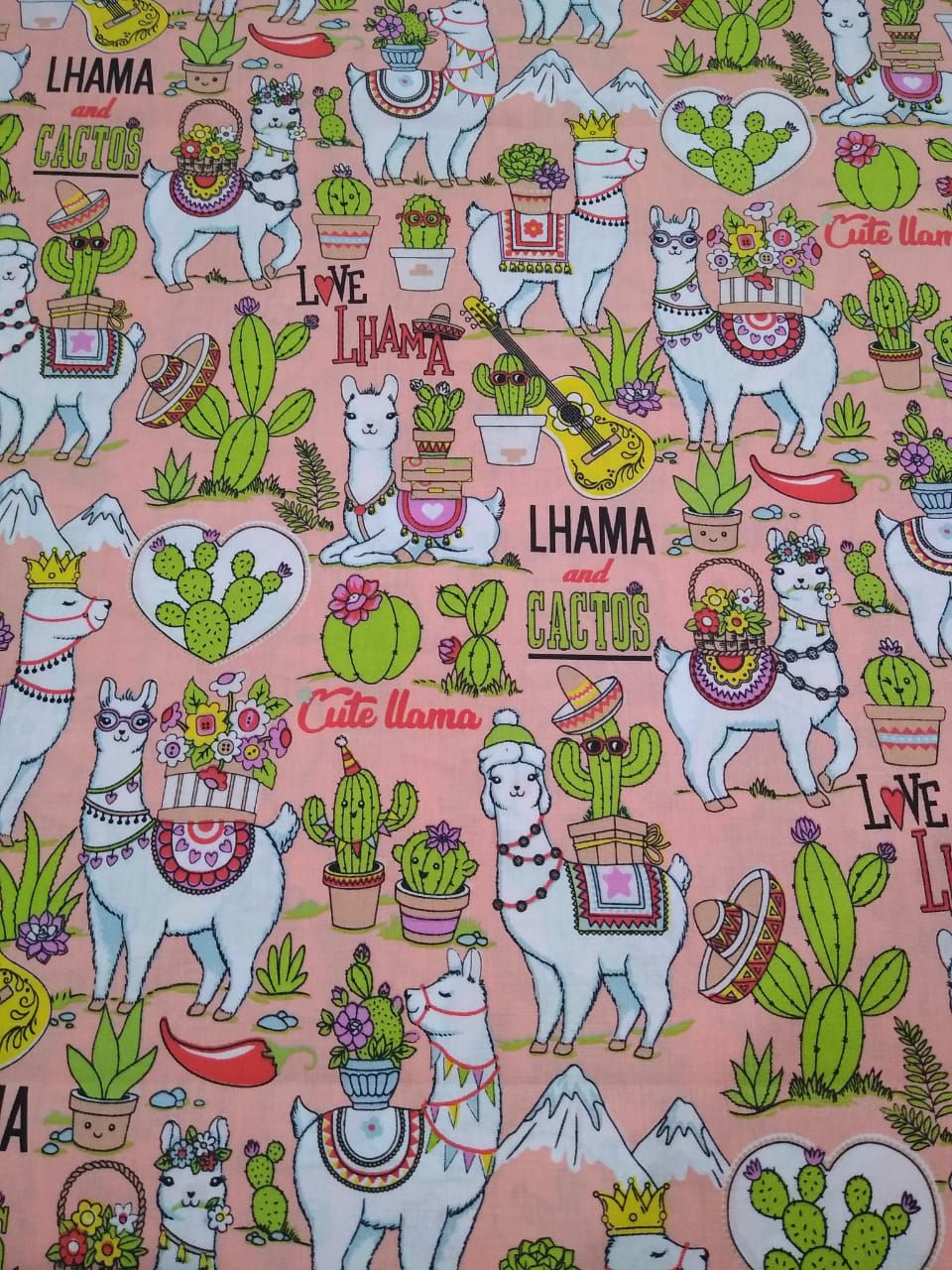 Tecido Tricoline Lhamas Fundo Salmão - Tecidos Dohler - 50 x 150 cm