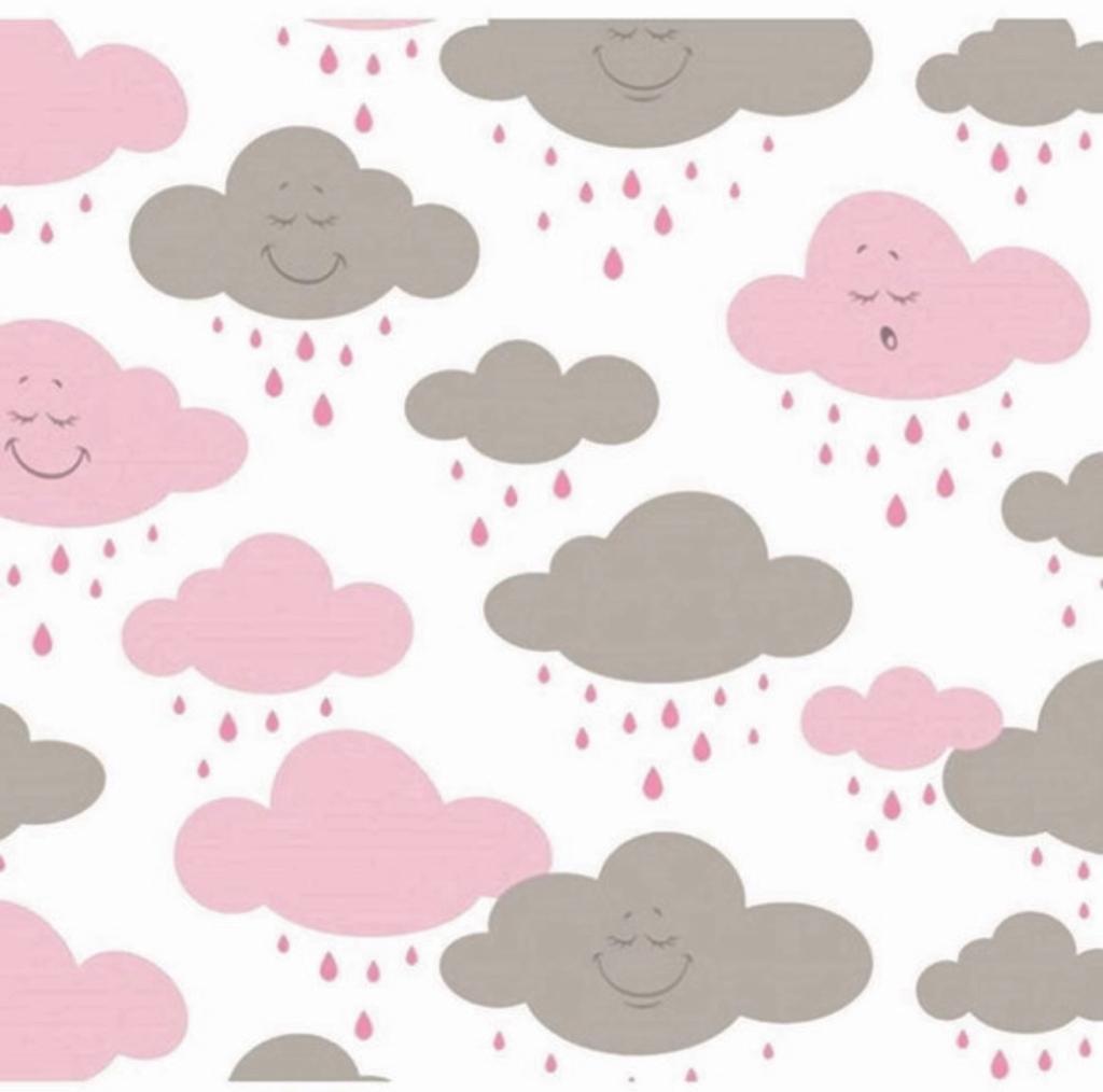 Tecido Tricoline Nuvens Chuva de Amor Rosa e Cinza - Tecidos Caldeira - 50 x 150 cm