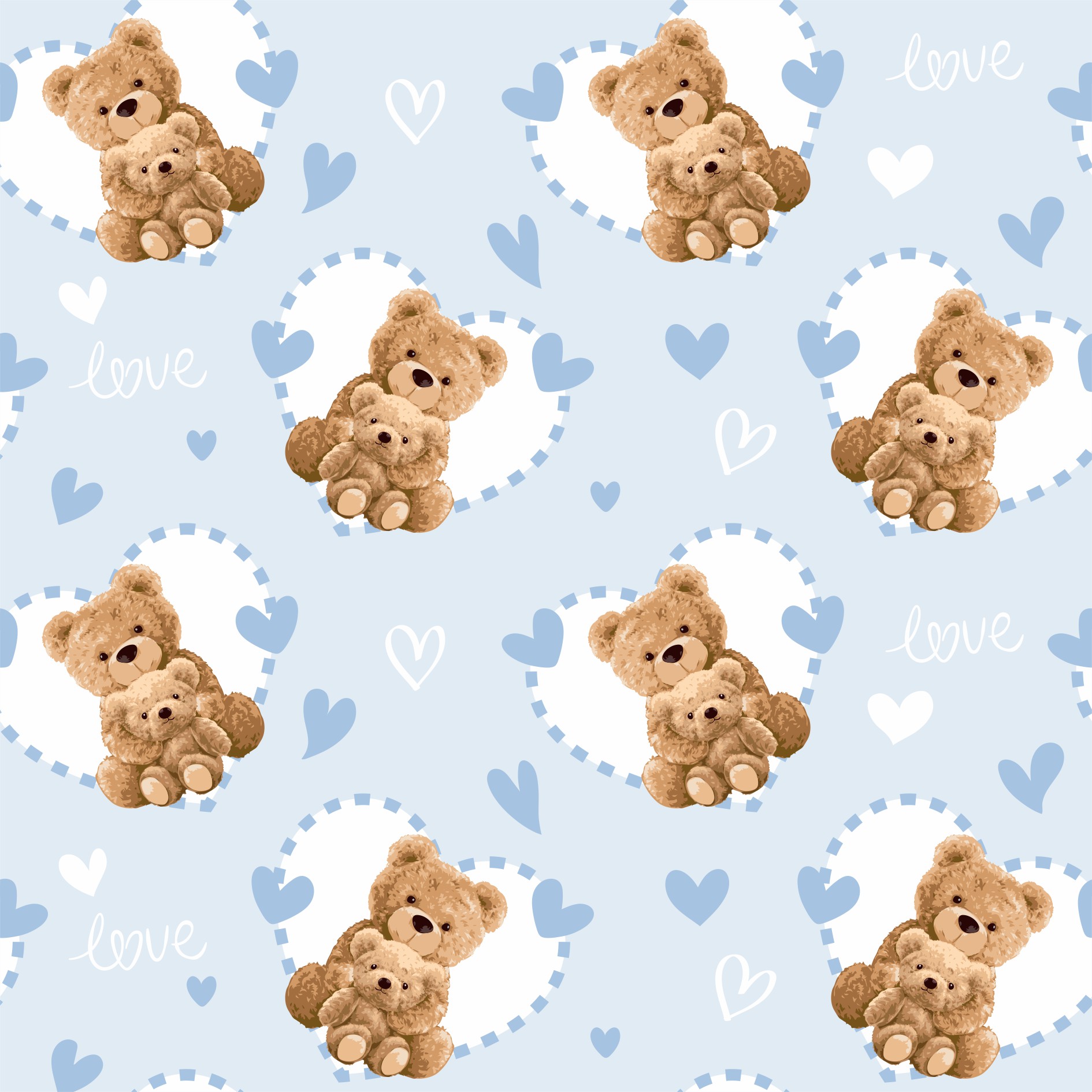 Tecido Tricoline Ursinhos Love fundo Azul - Peripan - 50 x 150 cm