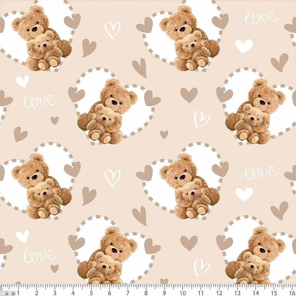 Tecido Tricoline Ursinhos Love Bege - Peripan - 50 x 150 cm