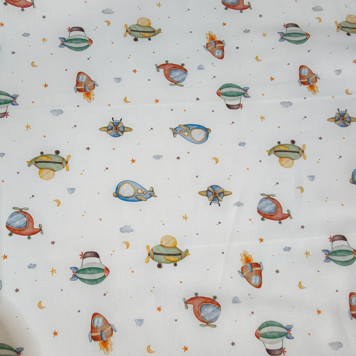 Tecido Tricoline Digital Foguete, Aviões, Helicópteros e Balões - Ibirapuera - 50 x 150 cm