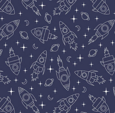 Tecido Tricoline Foguete no Espaço Marinho - Ibirapuera - 50 x 150 cm
