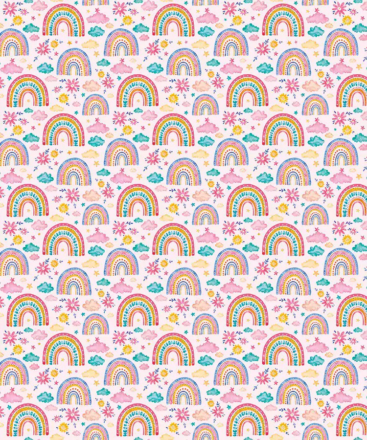 Tecido Tricoline Digital Arco Íris Fundo Rosa Claro - Tecidos Dohler - 50 x 150 cm