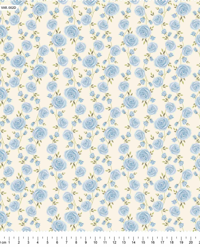 Tecido Tricoline Floral Laila Azul - Tecidos Caldeira - 50 x 150 cm
