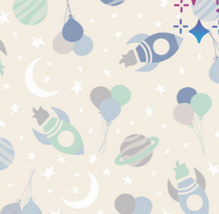 Tecido Tricoline Universo Divertido Azul e Verde (Brilha no Escuro) - Foguete no Espaço - Ibirapuera - 50 x 150 cm