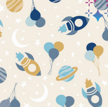 Tecido Tricoline Universo Divertido Marinho (Brilha no Escuro) - Foguete no Espaço - Ibirapuera - 50 x 150 cm